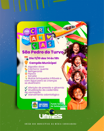 A Prefeitura convida todas as famílias para uma grande festa em comemoração ao Dia das Crianças, com muita diversão e cuidados especiais para toda a comunidade!